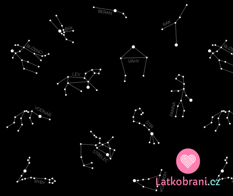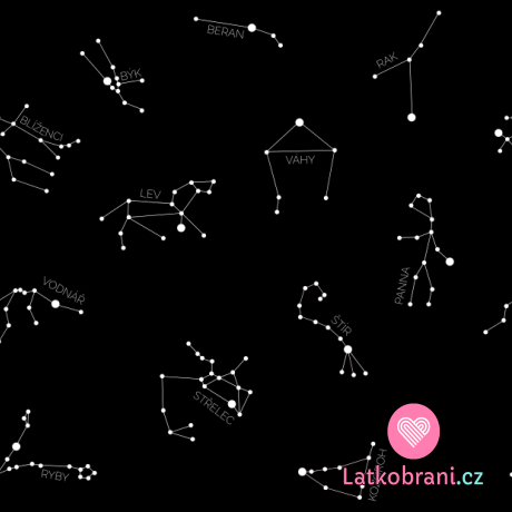 Úplet potisk souhvězdí a znamení zvěrokruhu na černé