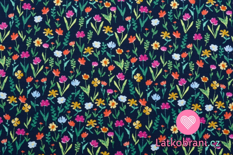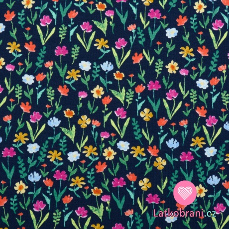 Úplet potisk kvetoucí zahrada na tmavě modré