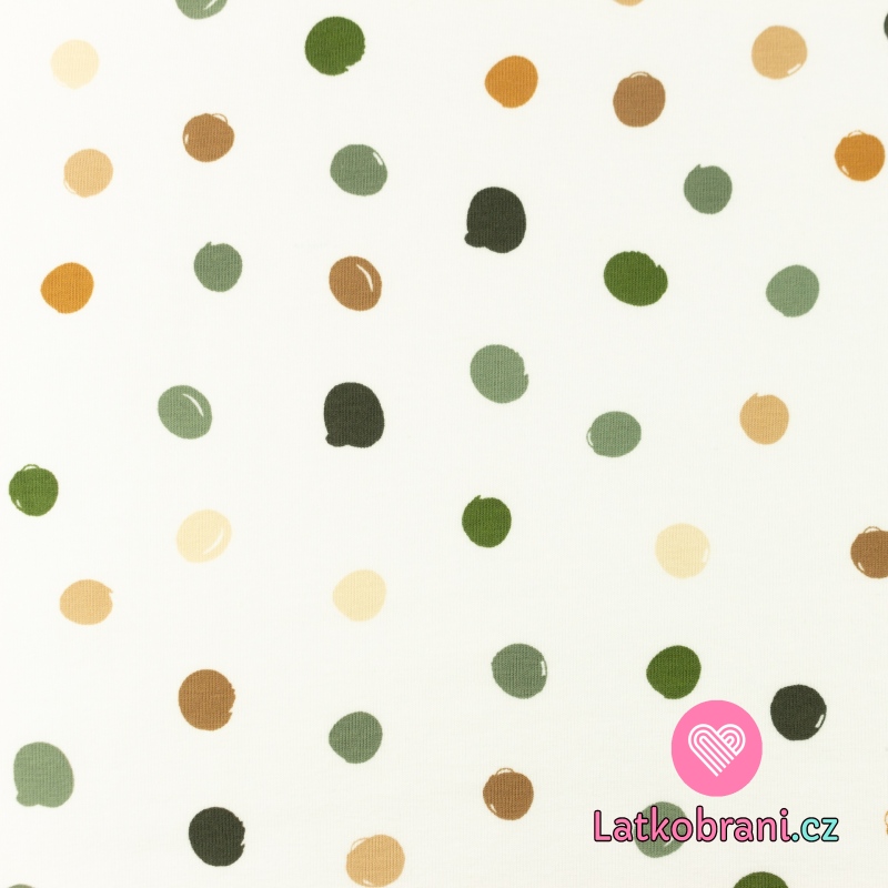 Úplet potisk nepravidelné puntíky do zelena na bílé