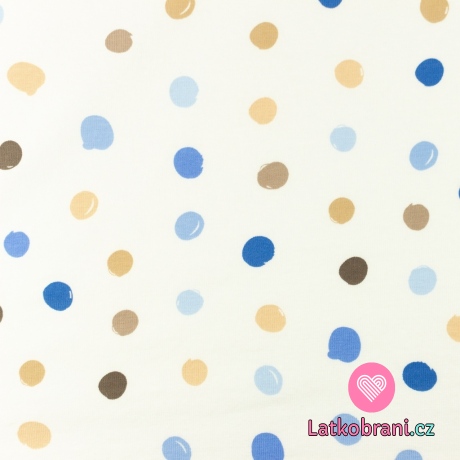 Úplet potisk nepravidelné puntíky do modra na bílé