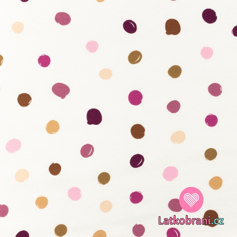 Úplet potisk nepravidelné puntíky do růžova na bílé