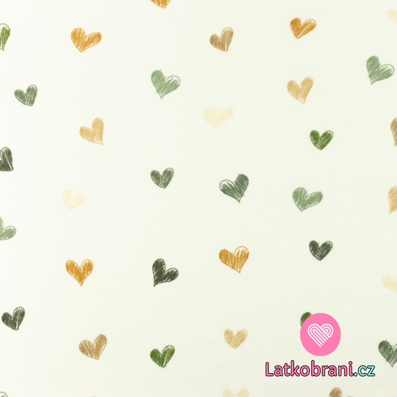 Úplet potisk malovaná srdíčka do zelena na bílé