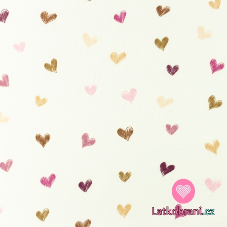 Úplet potisk malovaná srdíčka do růžova na bílé