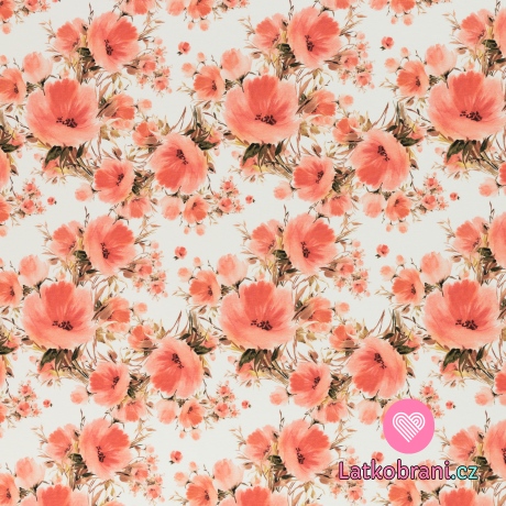 Úplet potisk lososové květy na bílé