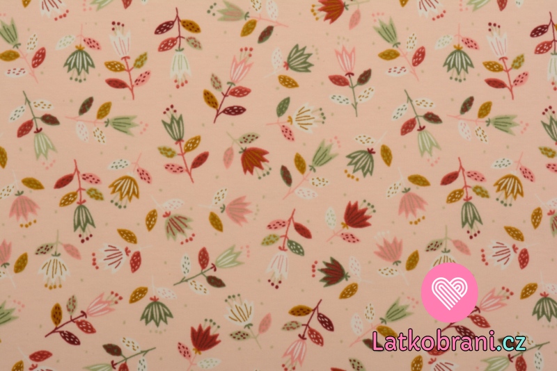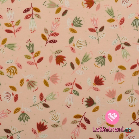 Teplákovina potisk malované tulipány na růžové, BIO