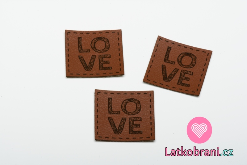 Štítek na oblečení LOVE, koženkovy, imitace kůže