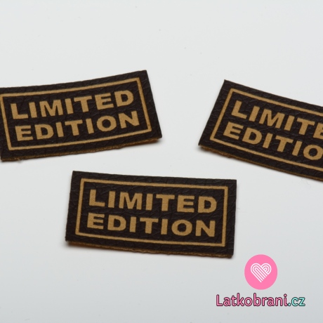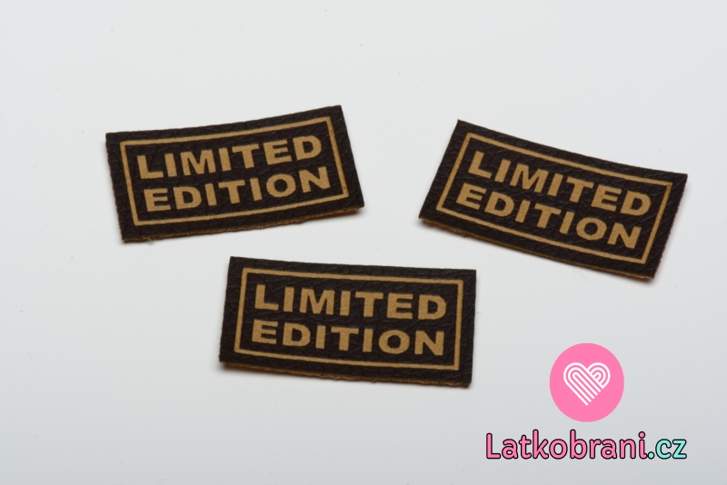 Štítek na oblečení "LIMITED EDITION", koženkový, imitace tmavé kůže