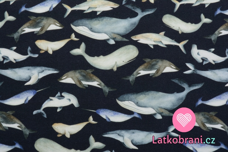 Úplet potisk mořští živočichové na tmavě modré, BIO