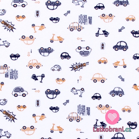 Bavlněný úplet autíčka na bílé