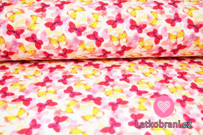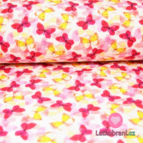 Teplákovina s barevnými duhovými motýlky (žlutý, červený)