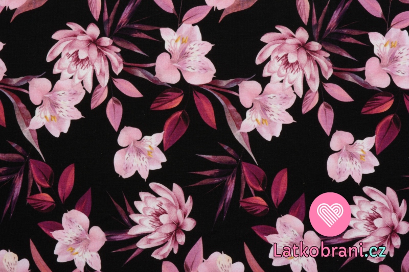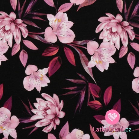 Teplákovina potisk purpurové magnolie na černé