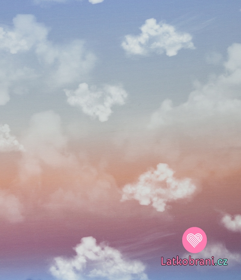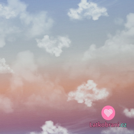 Teplákovina s příměsí modalu potisk mraky na růžovo - modré