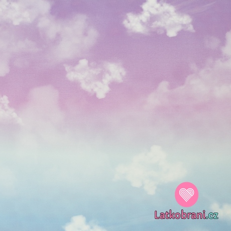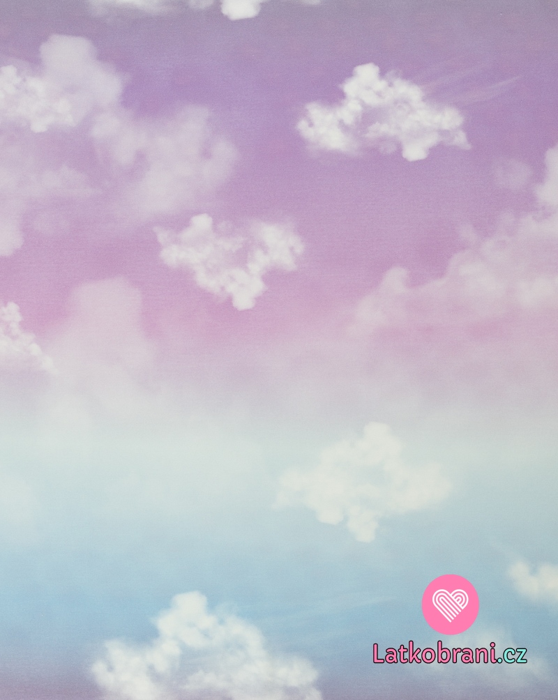 Teplákovina s příměsí modalu potisk mraky na fialovo - modré