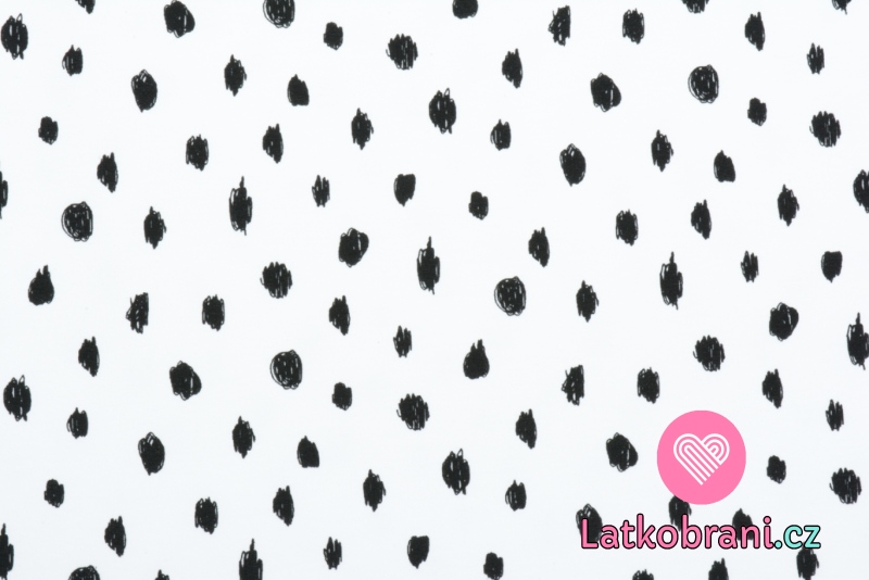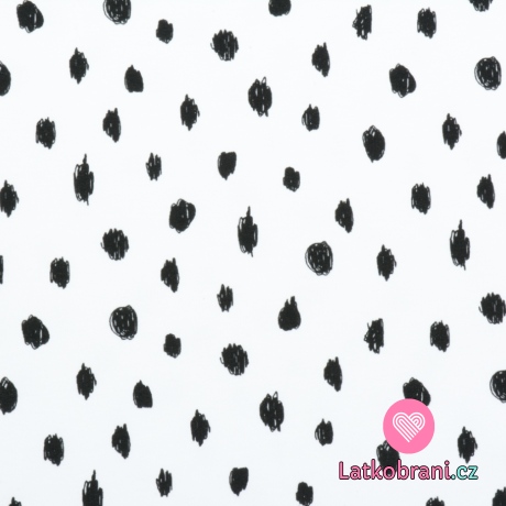 Teplákovina počesaná nepravidelné černé puntíky na bílé