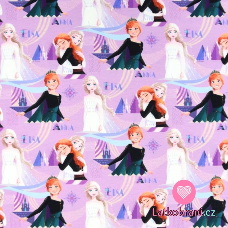 Teplákovina potisk Ledové království - Elsa a Anna na světle fialové