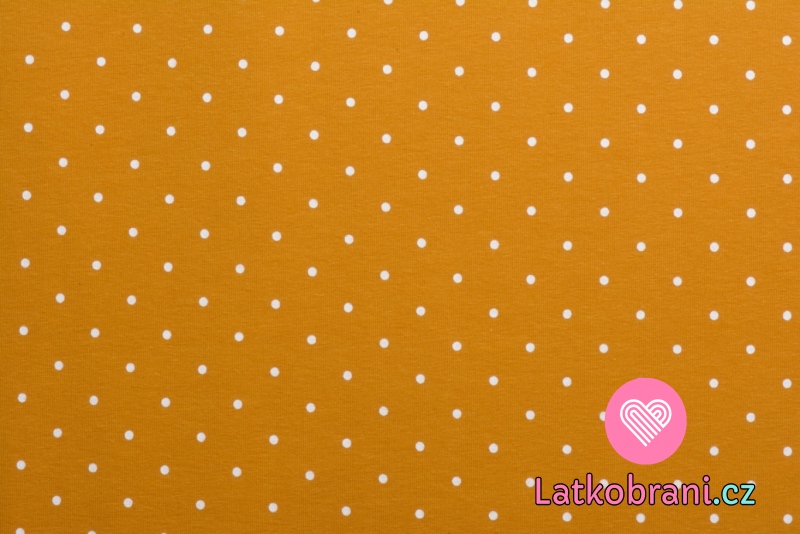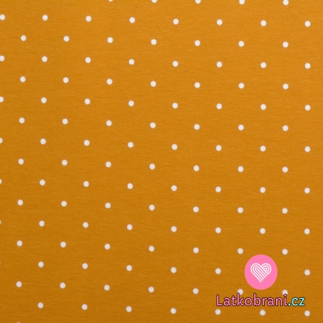 Teplákovina potisk bílý puntíček na hořčicové