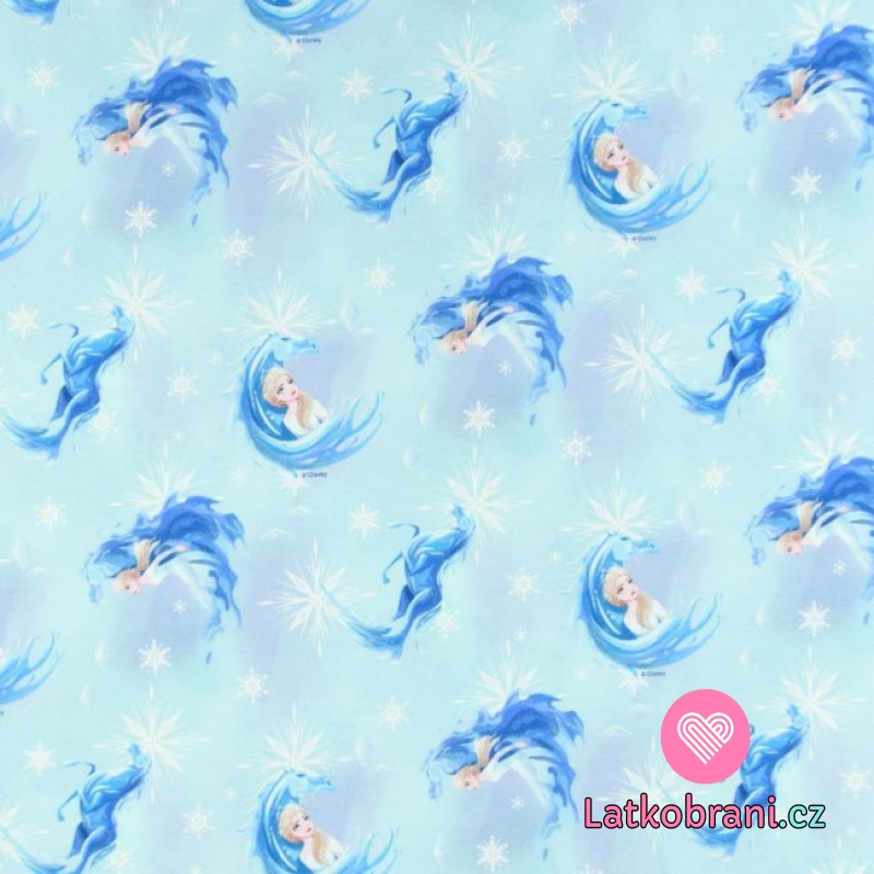 Teplákovina počesaná potisk Elsa a ledový kůň mezi vločkami na modré