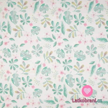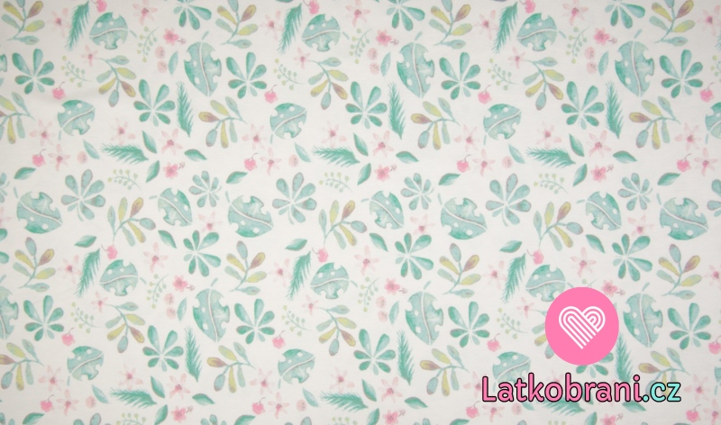 Úplet potisk zelené lístky na bílé