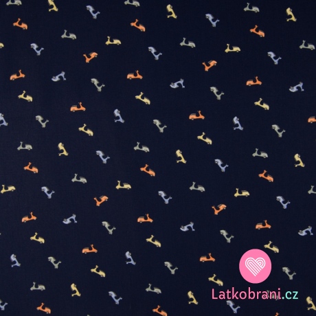 Bavlněný popelín potisk skútry na tmavě modré
