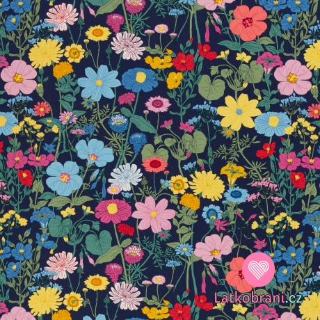 Úplet potisk vintage luční kvítí na tmavě modré