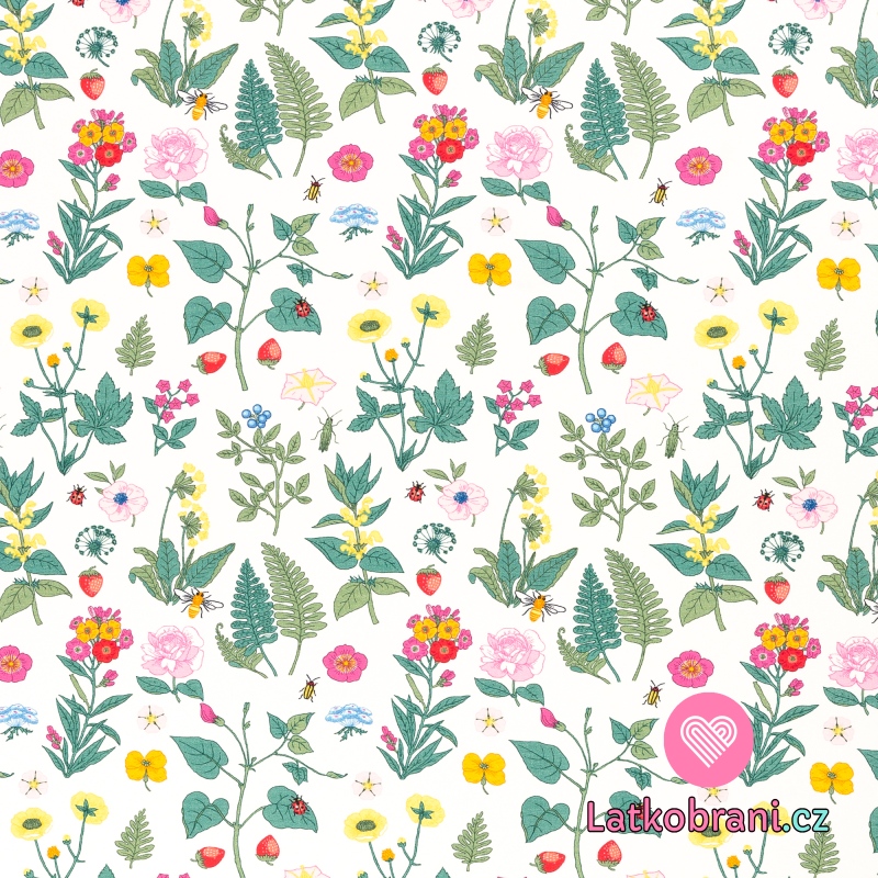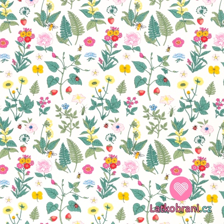 Úplet potisk vintage lesní kvítí na bílé
