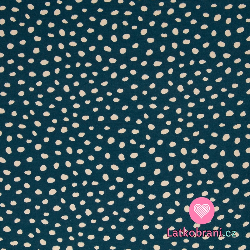 Viskóza potisk nepravidelné puntíky na petrolejové modré