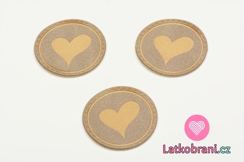 Štítek na oblečení kulatý "srdíčko", koženkový, kožená patina