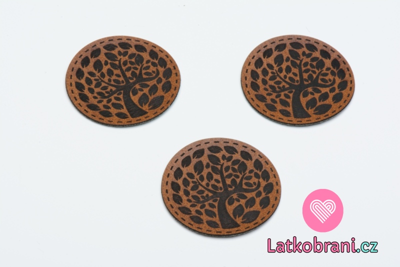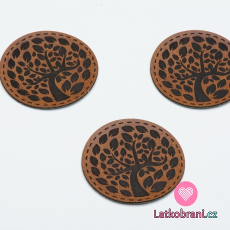 Štítek na oblečení kulatý "Strom", koženkový, hladký povrch
