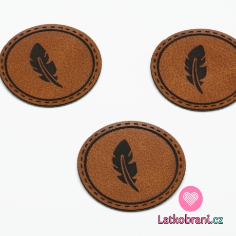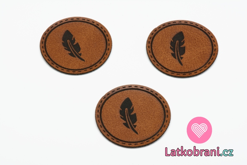Štítek na oblečení kulatý "peříčka", koženkový, hladký povrch