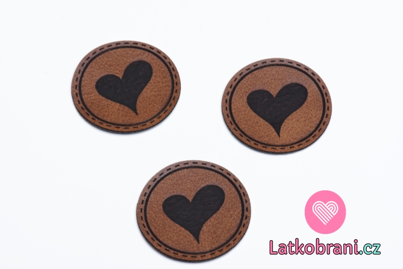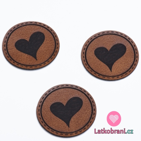 Štítek na oblečení kulatý "srdíčko", koženkový, hladký povrch