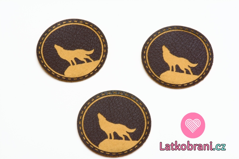 Štítek na oblečení kulatý "vlk", koženkový, imitace tmavé kůže