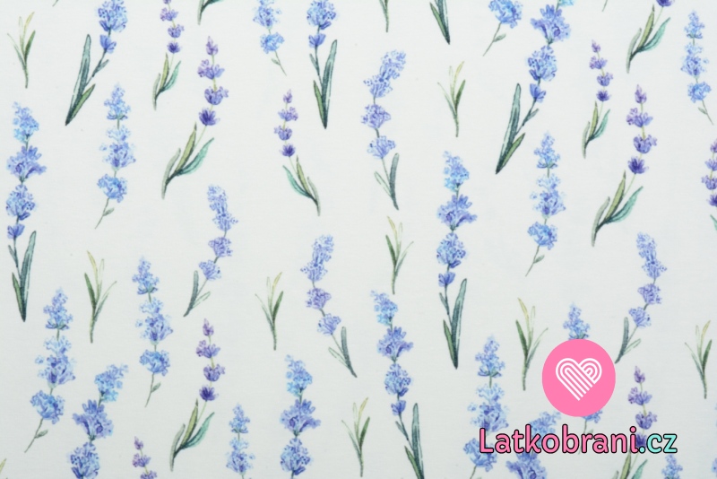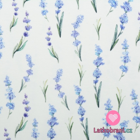 Úplet potisk levandulové větvičky na bílé