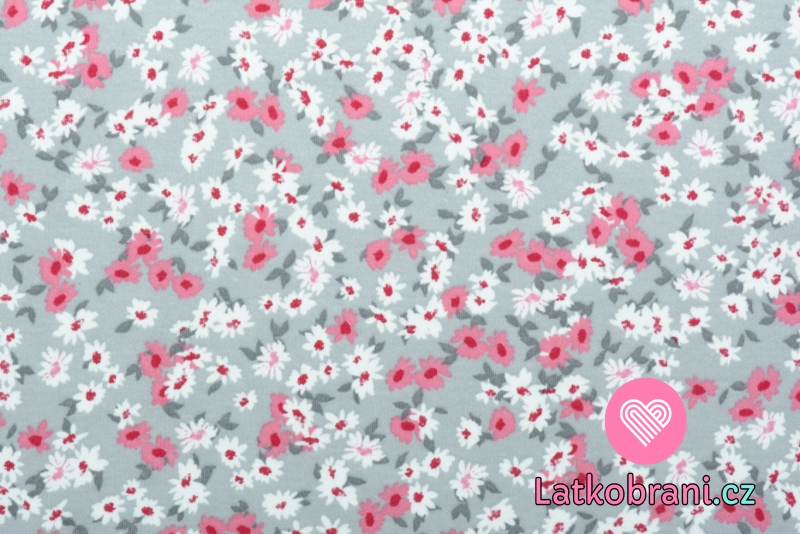 Bavlněný oboulícní úplet kvítka na šedé