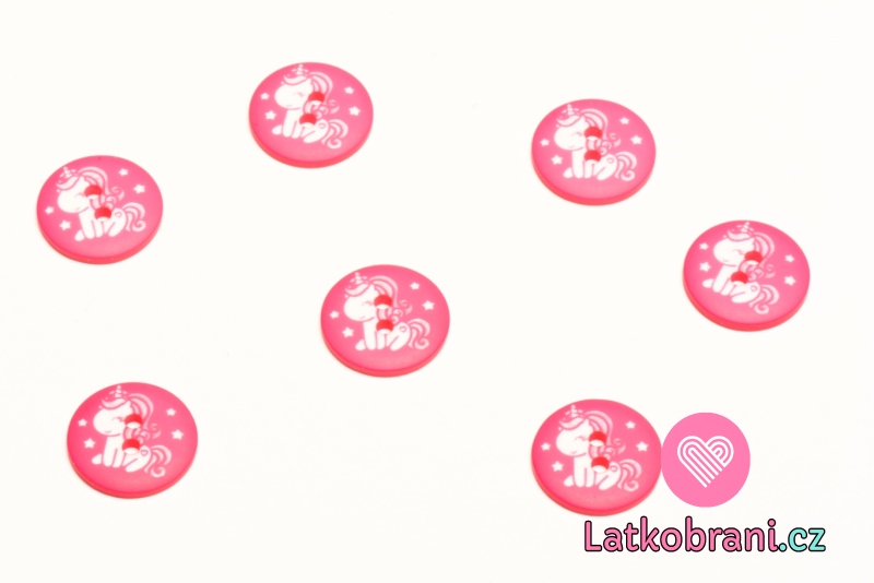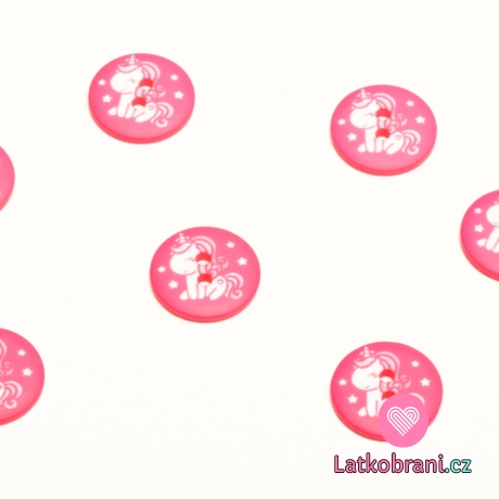 Knoflík kulatý, dětský s bílým jednorožcem na růžové