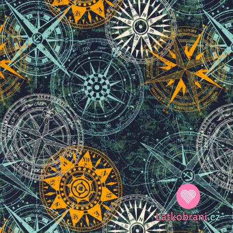 Teplákovina potisk kompas na tmavě modré