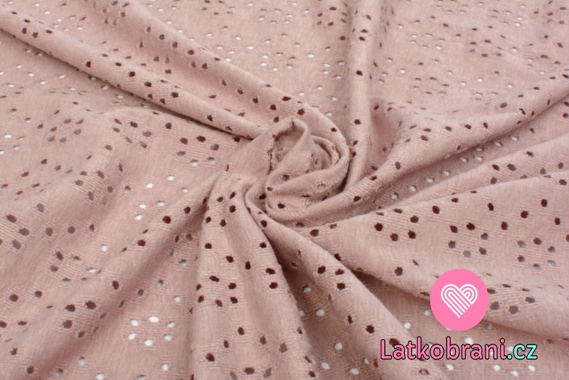 Úplet s dírkovanou výšivkou (madeira) jednobarevný starorůžový