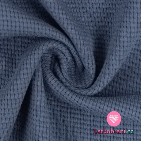 Bavlněný vaflový úplet jednobarevný džínově modrý