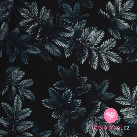 Viskóza potisk šedo-modré listy na černé