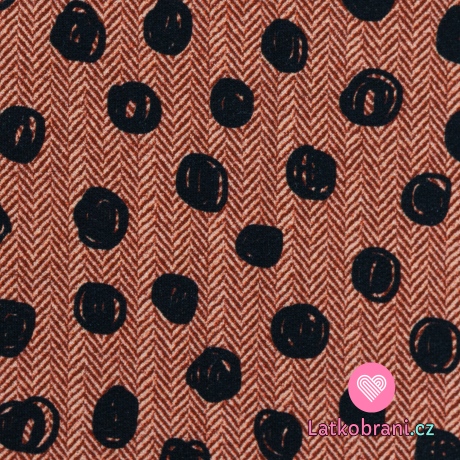 Teplákovina potisk klubíčka na vínovém podkladu se vzorem rybí kosti