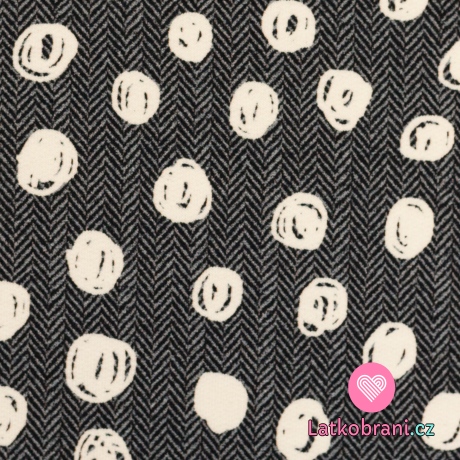 Teplákovina potisk klubíčka na antracitové se vzorem rybí kosti