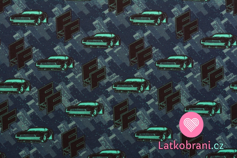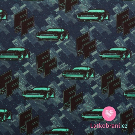 Teplákovina potisk rychlá auta "Rychle a zběsile" na tmavě modré