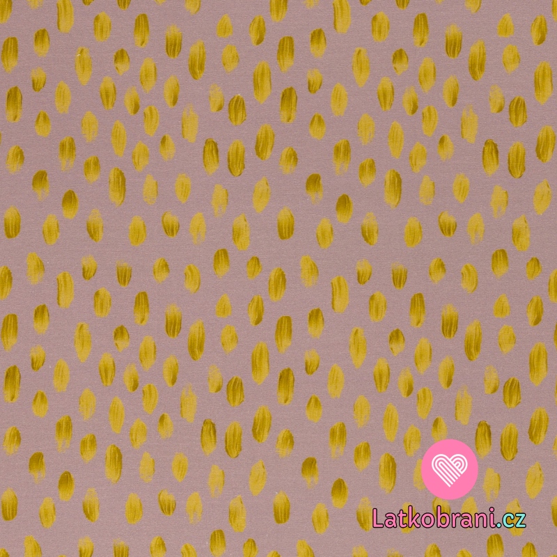 Teplákovina s příměsí modalu potisk žluté nepravidelné tahy štětcem na hnědé taupe