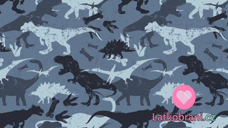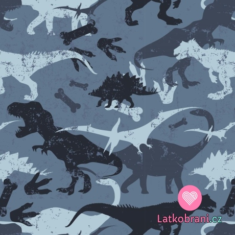 Teplákovina počesaná potisk dinosauři na jeansově modré