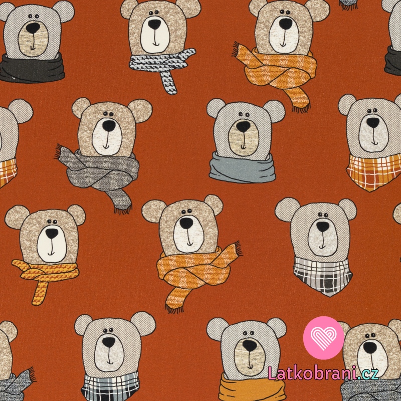 Teplákovina potisk medvídek Méďa na cihlové