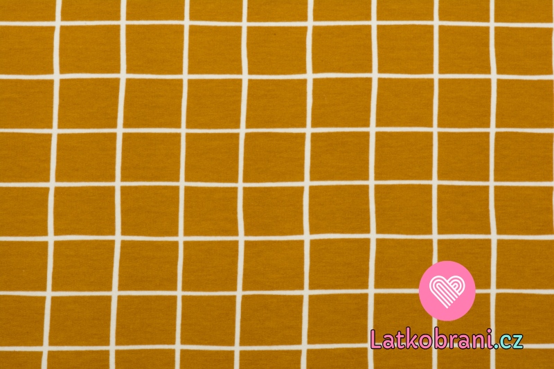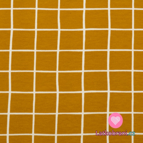Teplákovina počesaná potisk hořčicová mřížka, BIO