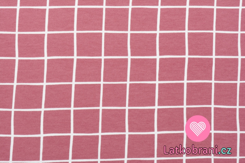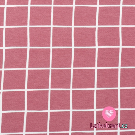 Teplákovina počesaná potisk růžová mřížka, BIO