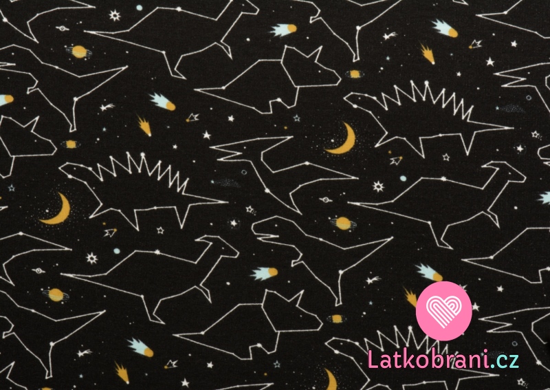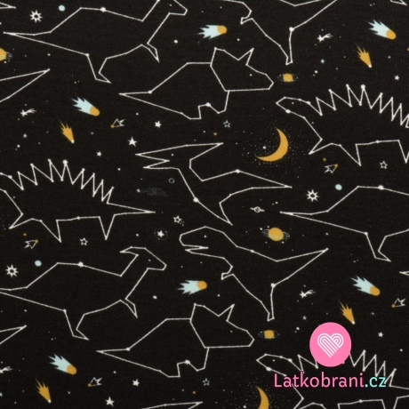 Teplákovina počesaná potisk souhvězdí dinosaurů na černé