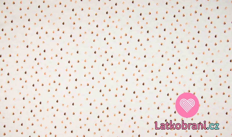 Úplet z organické bavlny potisk hnědé kapičky na bílé