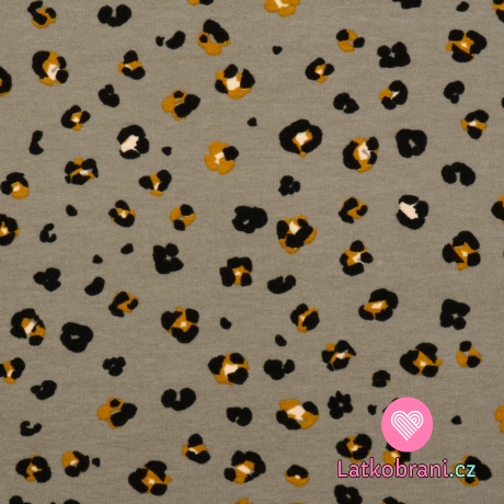 Teplákovina počesaná potisk leopardí vzor na šedé, BIO