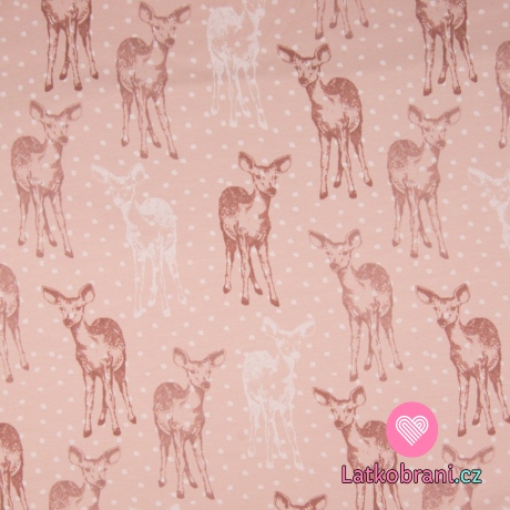 Teplákovina počesaná potisk koloušek mezi puntíky na růžové